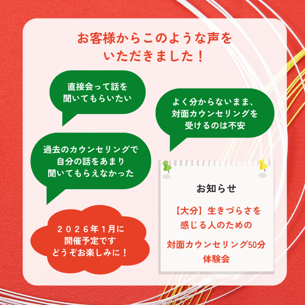 【大分】生きづらさを感じる人のための『対面カウンセリング体験会』を開催 ✨