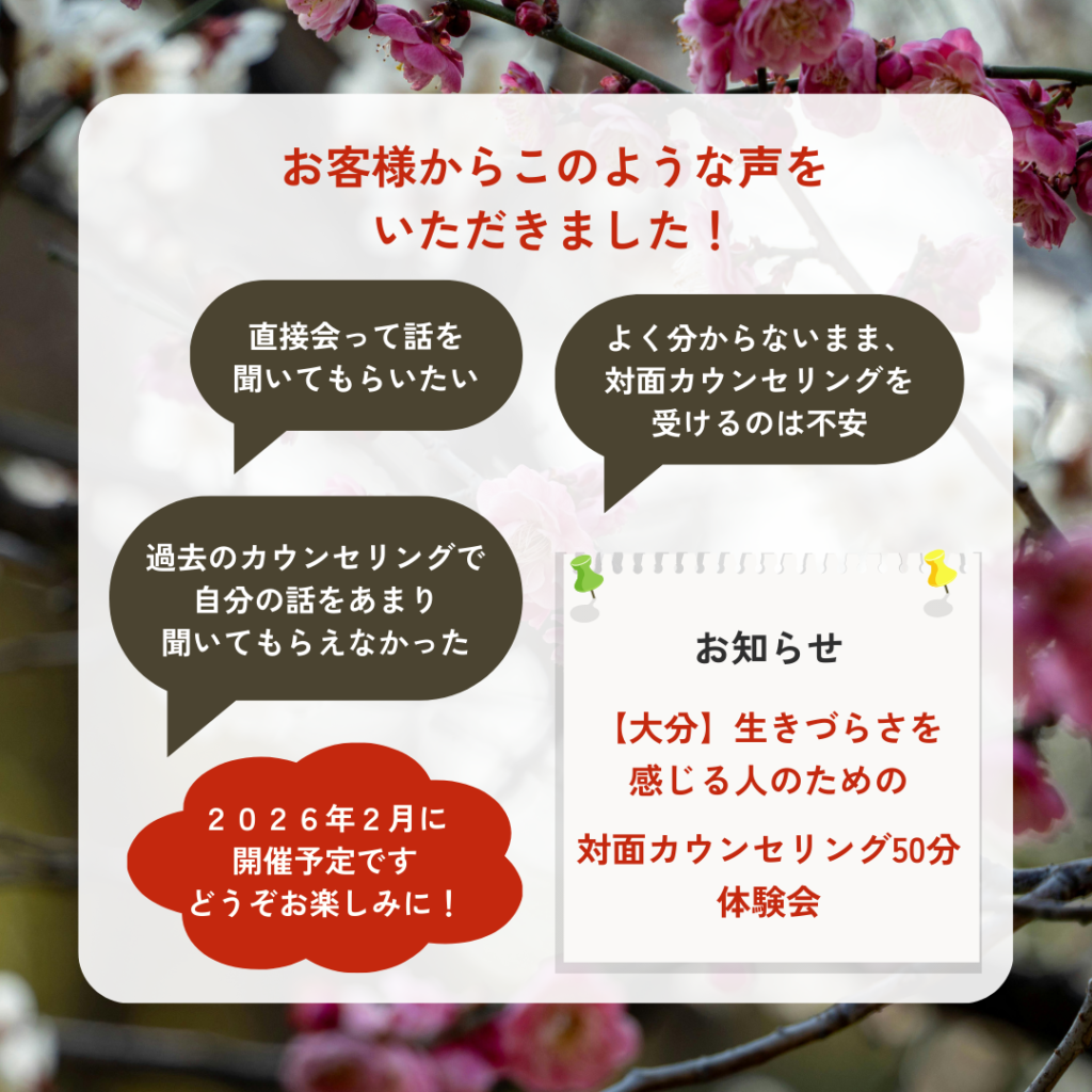 【大分】生きづらさを感じる人のための『対面カウンセリング体験会』を開催 ✨