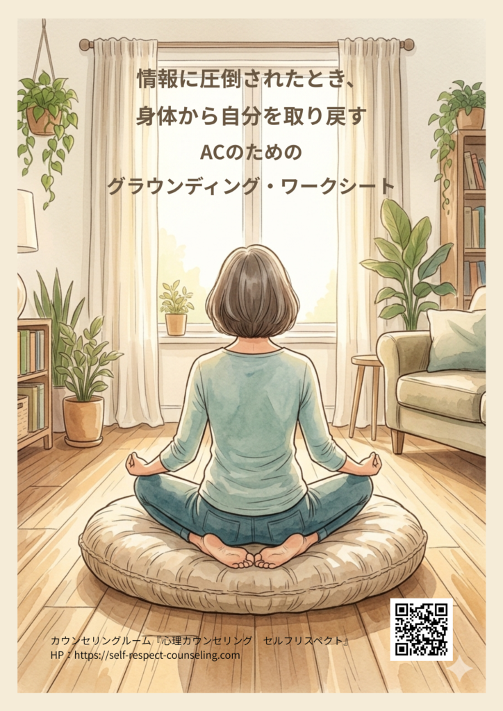 「情報に圧倒されたとき、身体から自分を取り戻す|ACのためのグラウンディング・ワークシート(PDF)」をご紹介します! 情報を見ているだけなのに、なぜか苦しくなってしまうことはありませんか? SNSやニュースを見ているうちに、不安が止まらなくなる ... -